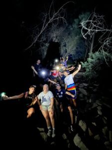 La actividad comenzó al atardecer, cuando el grupo inició la caminata por senderos serranos equipados con linternas. La experiencia nocturna sumó un componente especial: mayor percepción del entorno, silencio, compañerismo y una conexión distinta con la naturaleza.